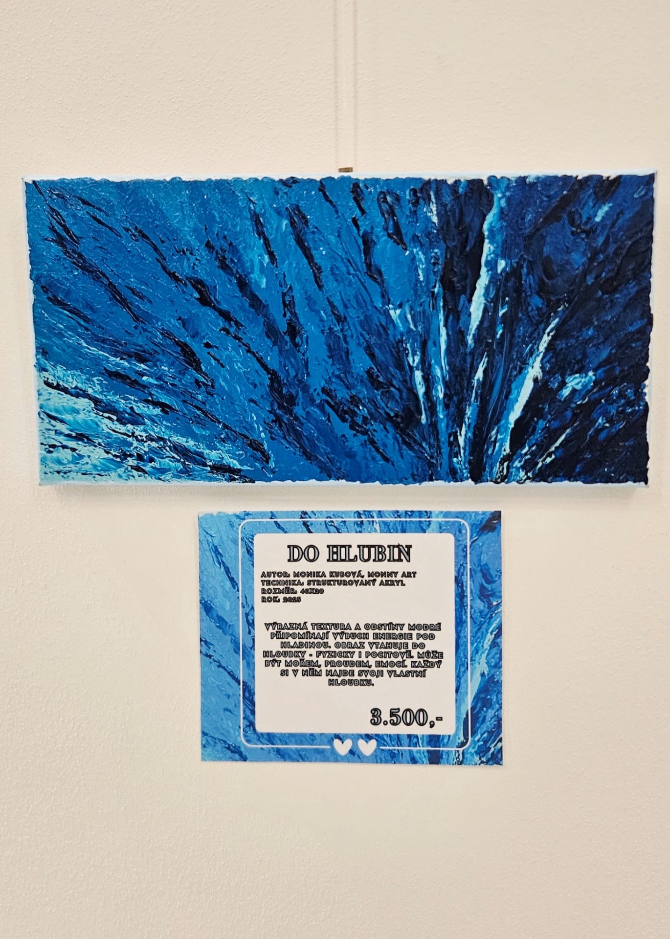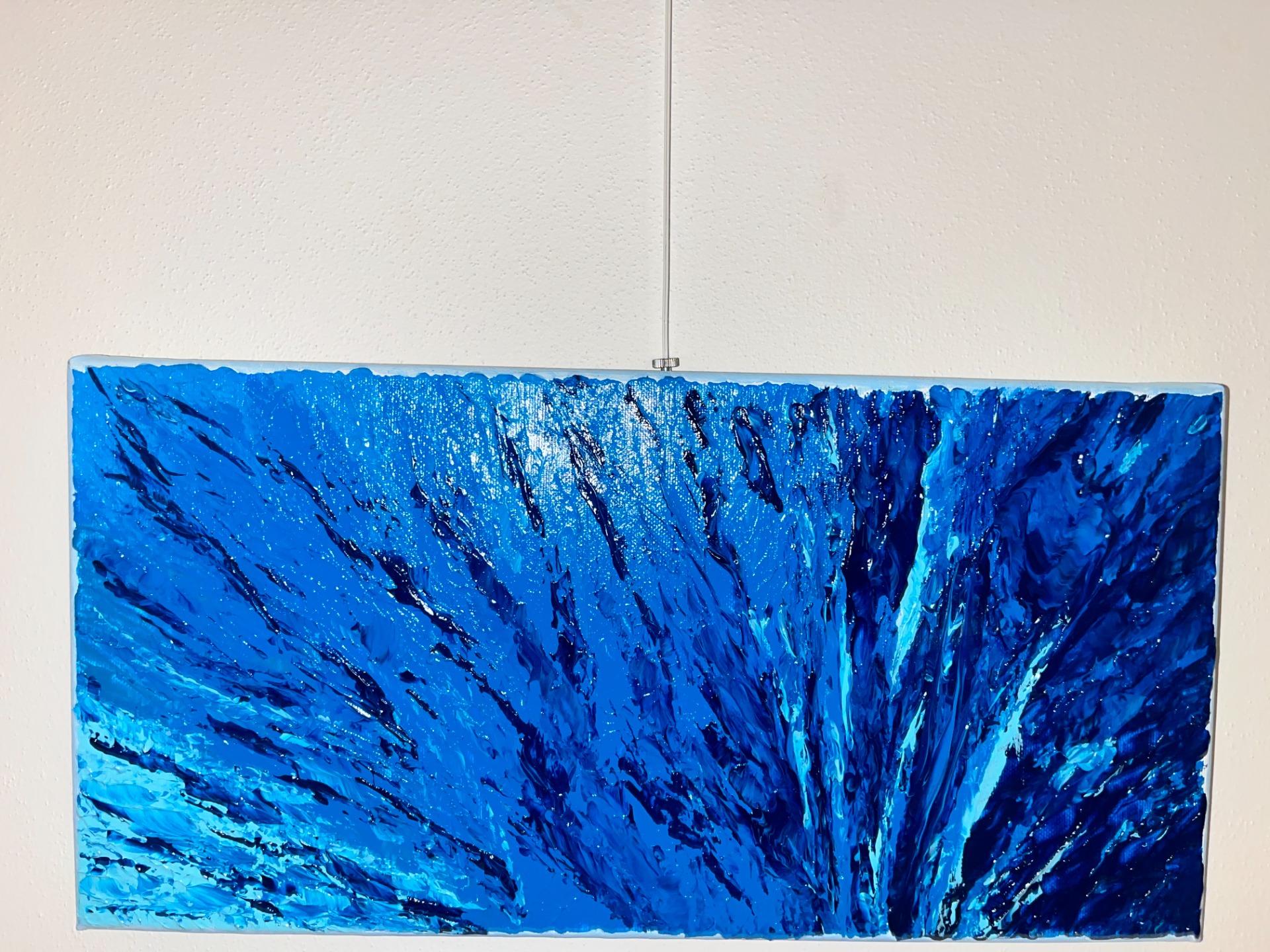 Výrazná textura a odstíny modré připomínají výbuch energie pod hladinou. Obraz vtahuje do hloubky - fyzicky i pocitově. Může být mořem, proudem, emocí. Každý si v něm najde svoji vlastní hloubku.